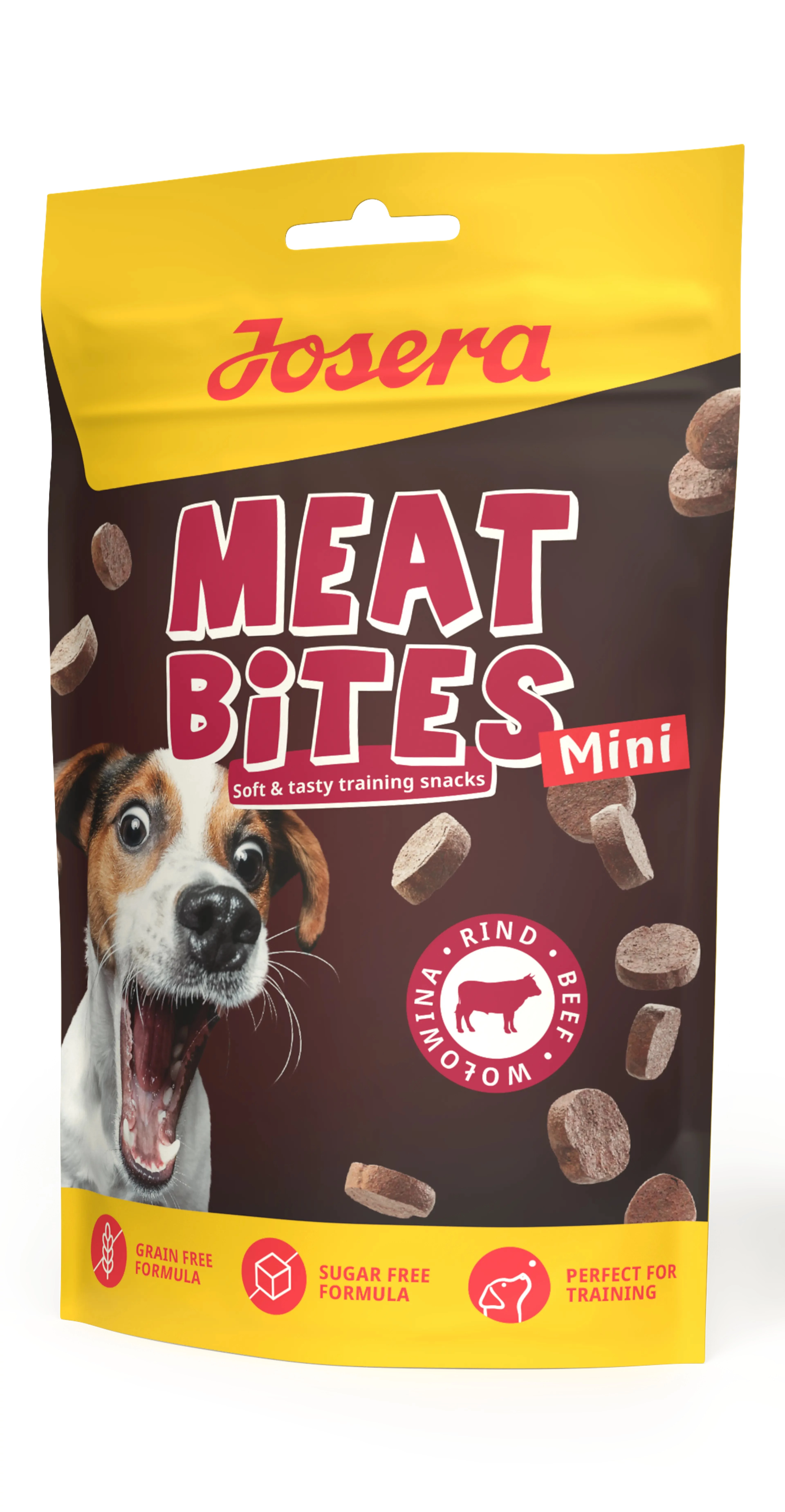 A Josera Meat Bites Mini Beef egy finom gabonamentes jutalomfalat marhahússal kistestű felnőtt kutyák számára.