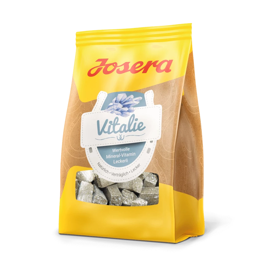 | A Josera Vitalie egy finom és tápláló jutalomfalat lovaknak, vitaminokkal, ásványi anyagokkal és biotinnal dúsítva. |